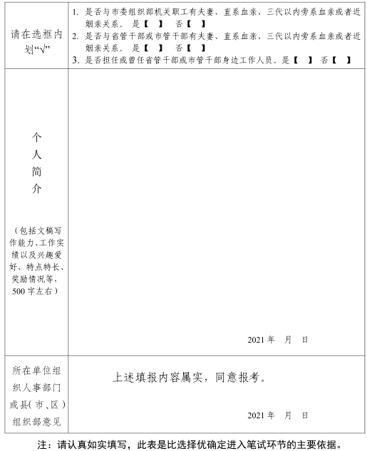附件:市委組織部2021年度公開(kāi)考調(diào)工作人員報(bào)名表